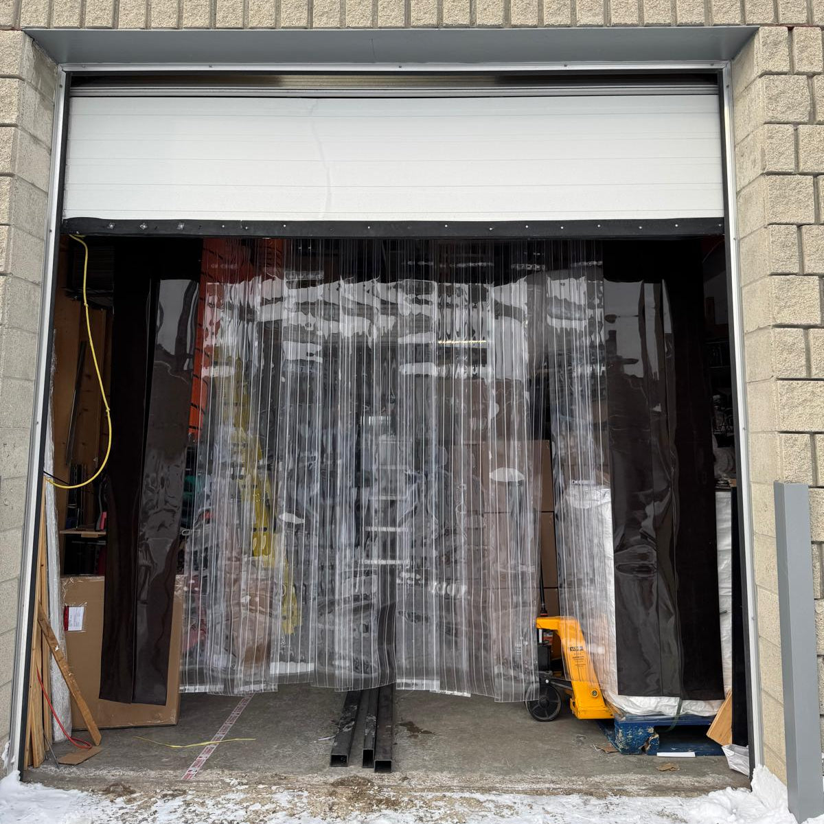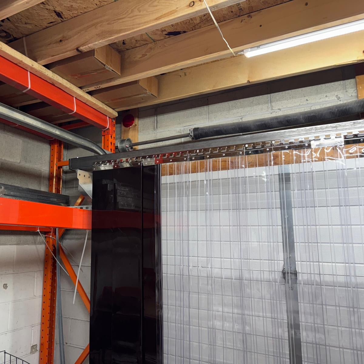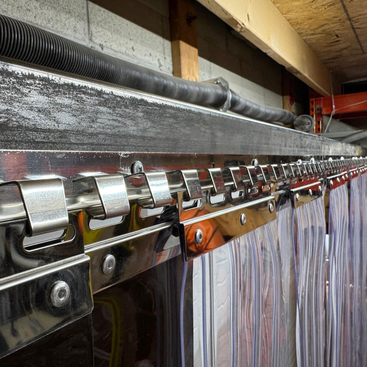 This kit combines our PVC strip curtain system with roll-up door mounting kit, providing correct clearance from the roll-up door mechanism and dependable performance in high-traffic commercial environments.