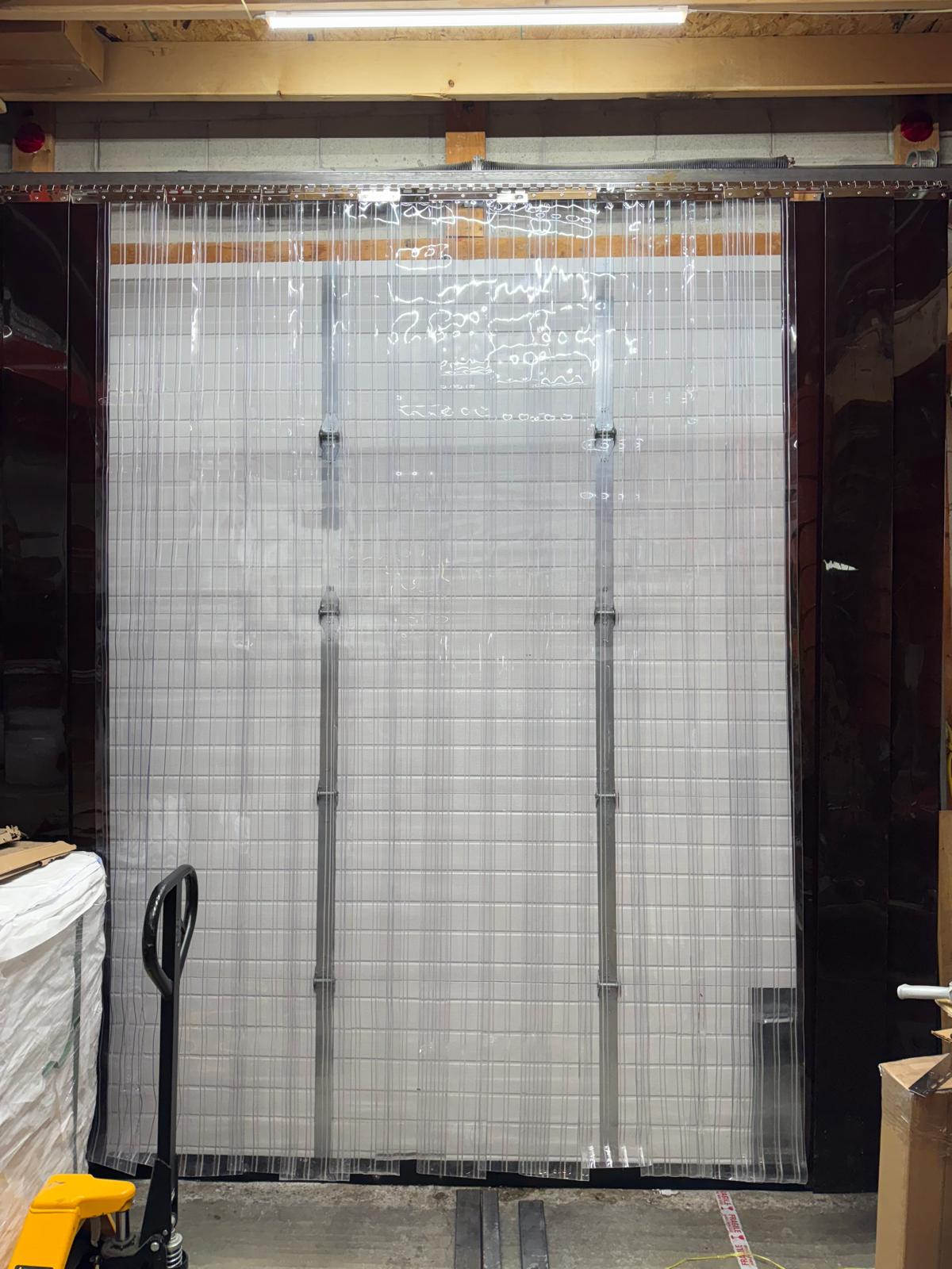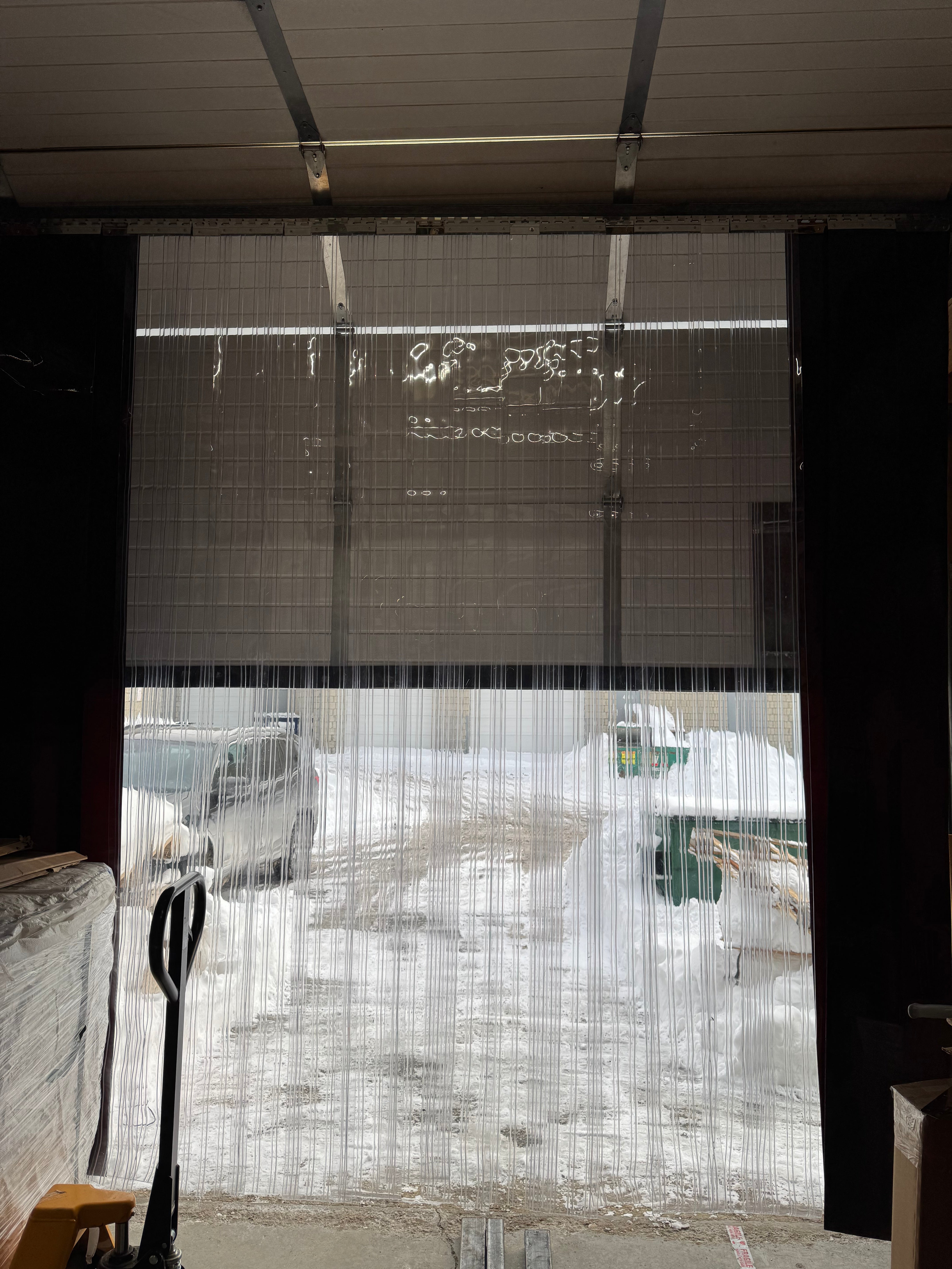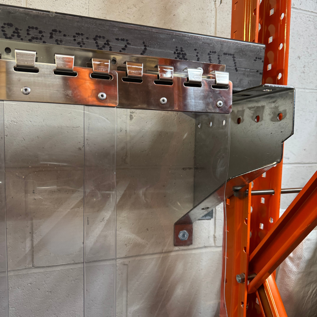 This kit combines our PVC strip curtain system with roll-up door mounting kit, providing correct clearance from the roll-up door mechanism and dependable performance in high-traffic commercial environments.
